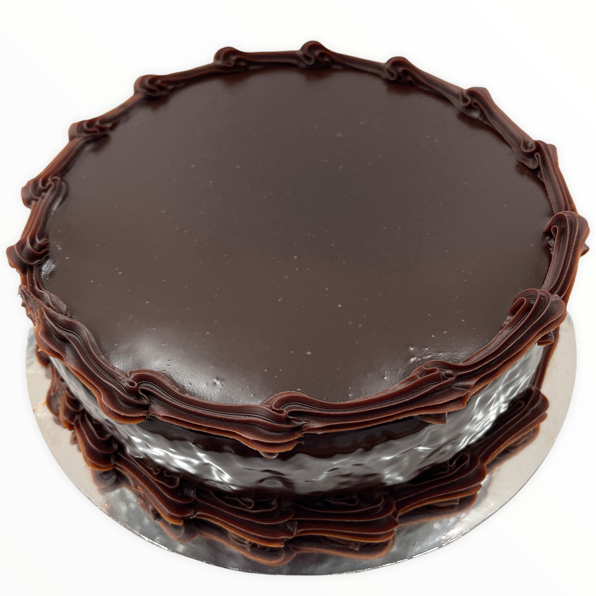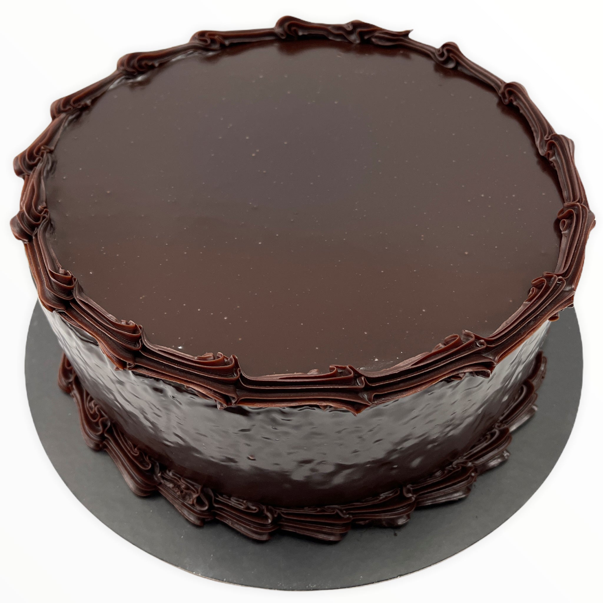 Freshly made for purchase in the 6 inch round (6-8 serves) and 8 inch round (16-18 serves) sizes, but contact us for larger sizes and speciality decorations- or try our Design a Cake customisation feature! Writing in chocolate on the top of the cake is included.
