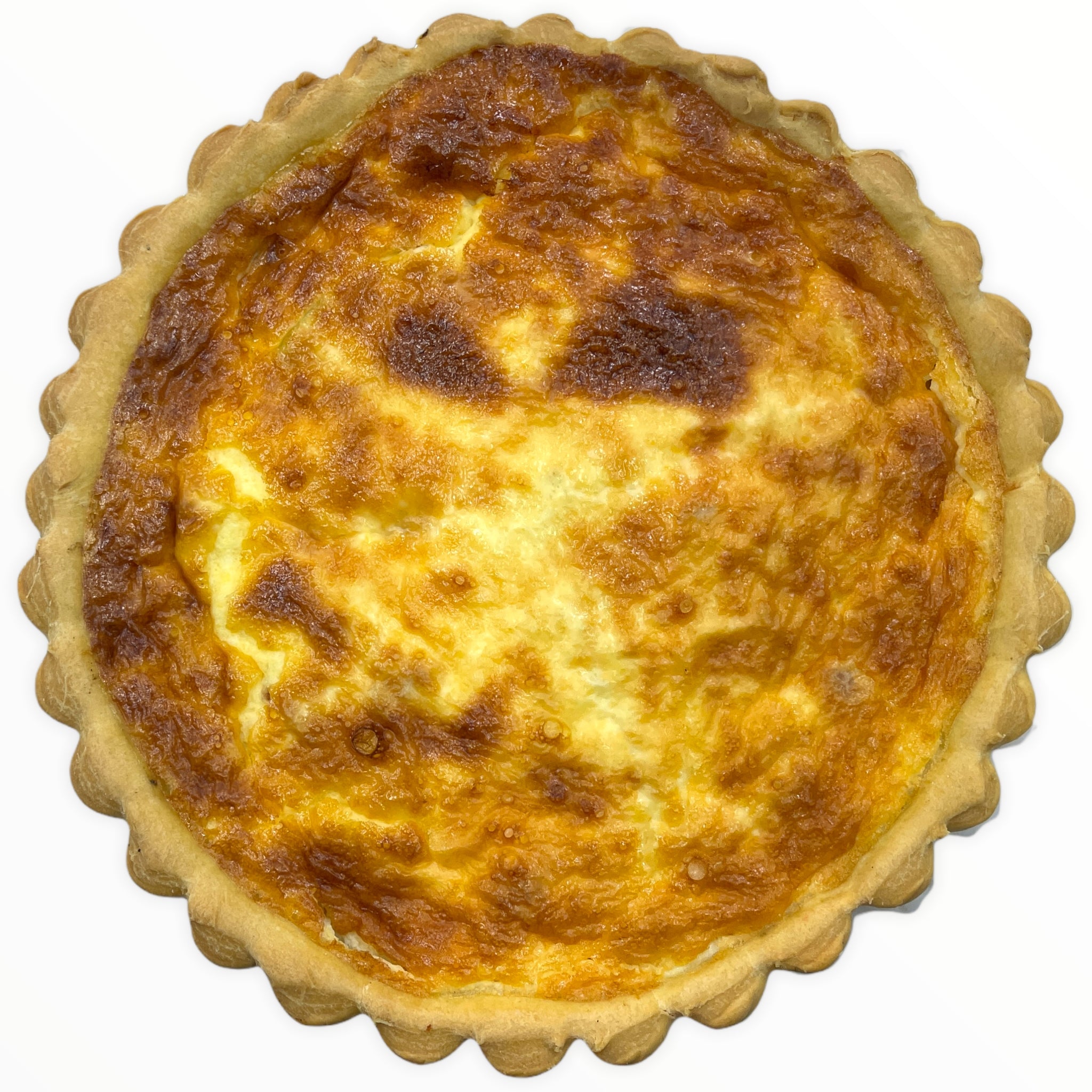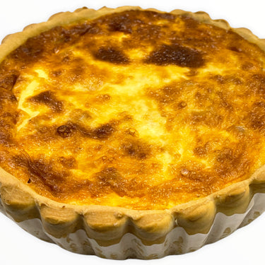 A larger version of our individual quiche Lorraine! Made from the same decadent locally sourced mix of eggs, cream, bacon and cheese in a handmade crusty quiche base, it makes a hearty dinner for the quiche loving family!